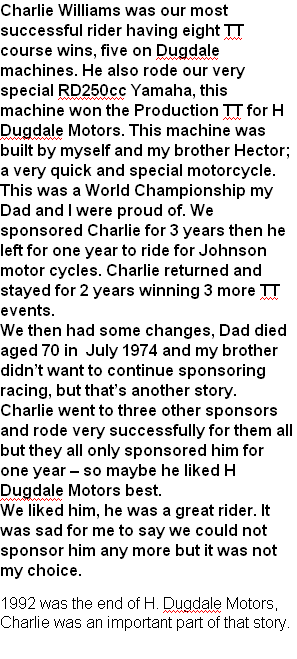 Charlie Williams on 45 our very special 380cc YAMAHA. This was built for him to ride in the 500cc Senior TT. But he did win 350cc TT